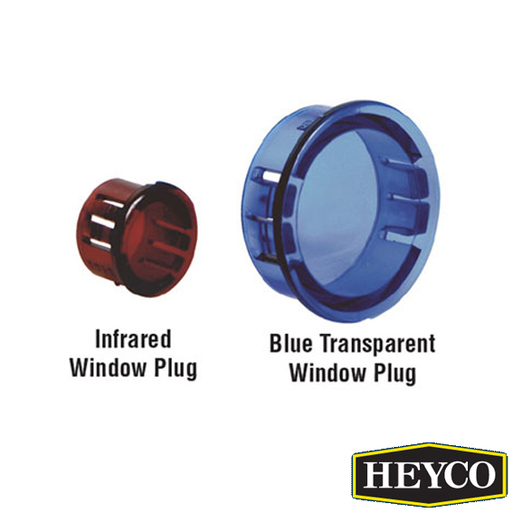 Heyco window plugs are available in a clear polycarbonate and in a range of custom tints. They are quick and easy to install with fingertip pressure and locks firmly into panels to provide a neat finish.